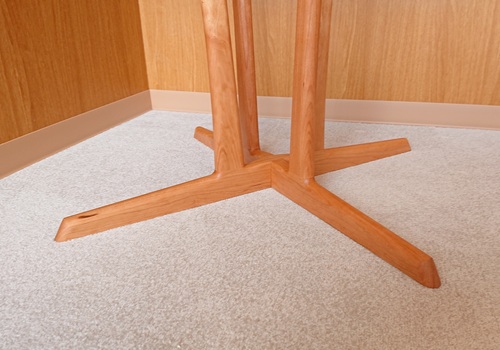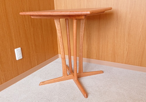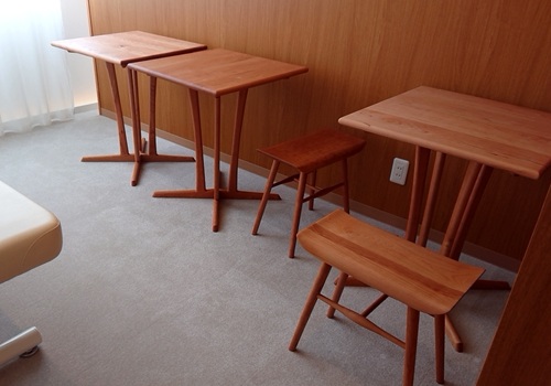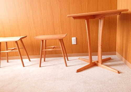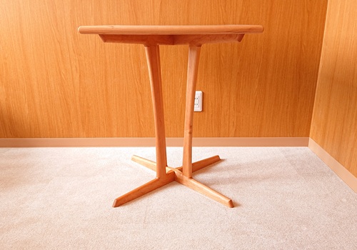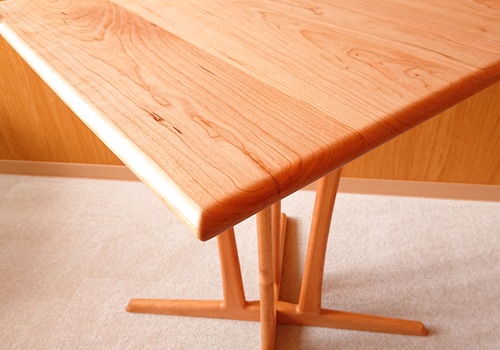 今回は正方形の無垢材の天板ですが、突板仕様や円形の天板などにも対応可能です。